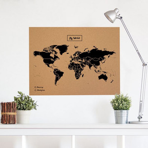 > Miss Wood Weltkarte Woody Map Natural Cork XL black