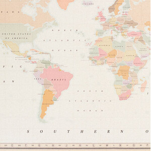 Old School: auf Alt gemacht, Shabby Schick mit einer pastelligen, bunten Weltkarte.