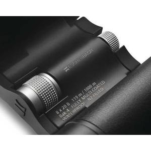 Elegantes Schwarz dominiert durchweg das raffinierte Fernglas. Armierungen aus feinem, widerstandsfähigem Kunstleder treten in ein spannendes Wechselspiel mit dem Mattschwarz des Gehäuses. Optische Akzente setzen zudem die schwarz glänzende Applikation auf dem Steg, das Fokus-Rad aus Metall und das dezente Logo des Markenherstellers.