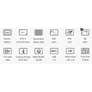 • Hohe Auflösung durch 3,76-µm-Pixel - ideal für lichtstarke und scharfe Teleskope, wie Apos, Hyperstar, Celestron Faststar, lichtstarke Newtonteleskope