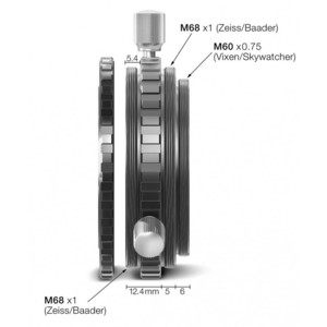 Die Ultrashort Okularklemme mit Gewinde M68 männl. und M68 und M60 Adapter-Gewinde - ist die kürzeste 2" Okularklemme im M68 (ZEISS) Adaptersystem.
