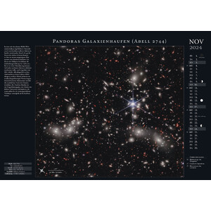 13 erläuterte, aktuelle Aufnahmen der Europäischen Südsternwarte (ESO), des Vera-Rubin-Teleskops, sowie der Weltraumteleskope James-Webb und Hubble. Außerdem: Informationen zum monatlichen Sternhimmel.