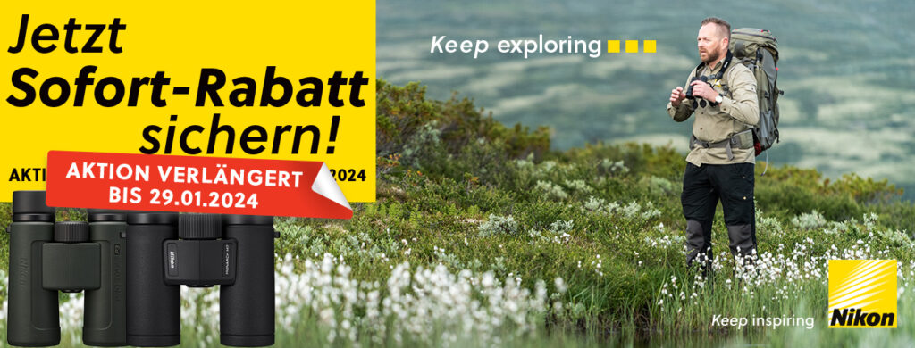 Profitieren Sie vom 27.10.2023 bis zum 29.01.2024 von Nikon´s Winter-Sofortrabattaktion. Auf ausgewählte Ferngläser der Prostaff P3 und Monarch M7-Serie erhalten Sie einen Rabatt in Höhe von 30,- € bzw. sogar 60,- €!