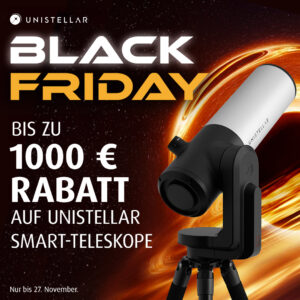 Unistellar bietet während eines „Black Friday“ Aktionszeitraums nun 20% Rabatt auf sämtliche Produkte an: Smart Teleskope, Rucksäcke, Zubehör.