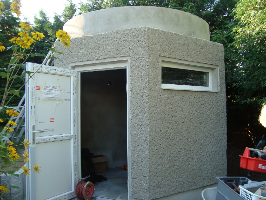 Durch einen erhöhten Aufbau der Kuppel entstand noch mehr Platz für das Instrumentarium. Die breiteste Stelle der Kuppel befindet sich auf ca. 1,50m Höhe. Wichtig ist auch die gute Abdichtung der Basis gegen den Regen.
