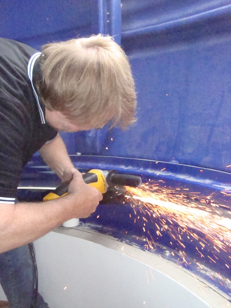 Auf dem Betonkranz wurde der Basisring der Kuppel befestigt und versiegelt. Von der genauen Montage des Basisringes hängt im Wesentlichen, wie leichtgängig die Kuppel am Ende dreht. Deswegen investieren wir hier viel Zeit in die genaue Ausrichtung.