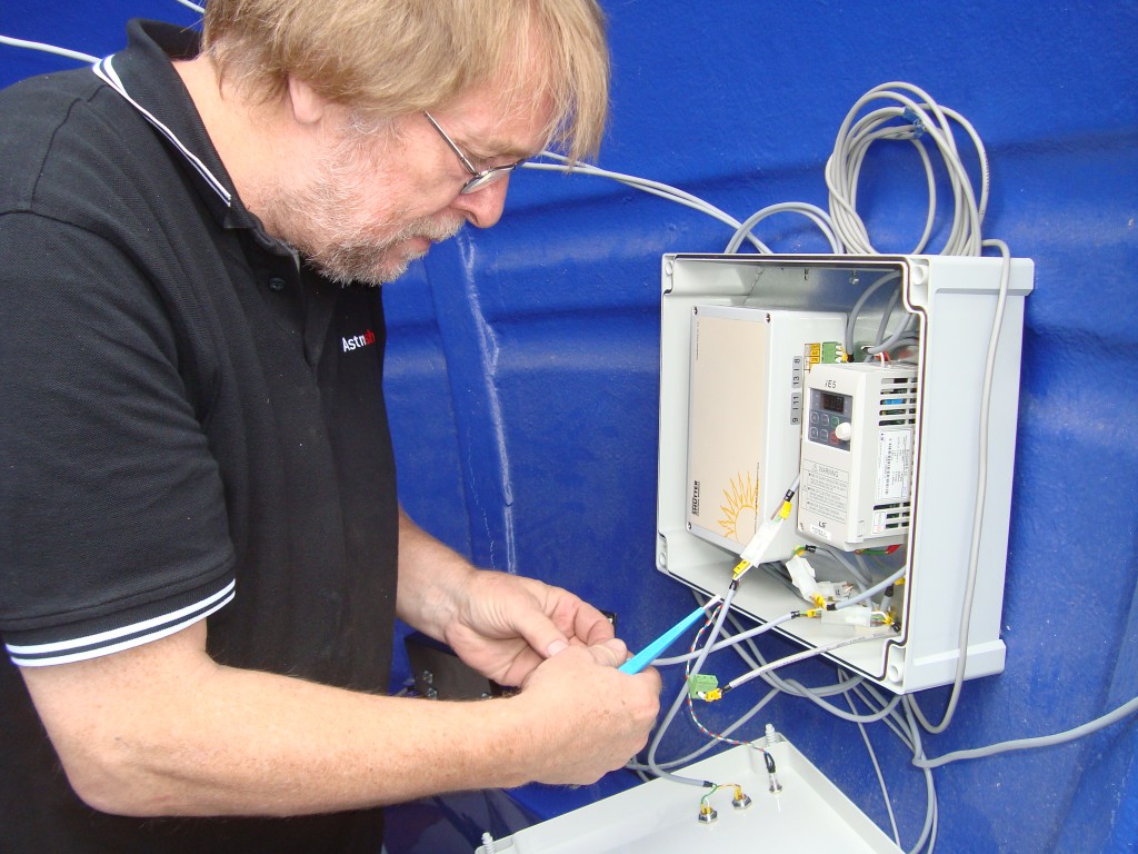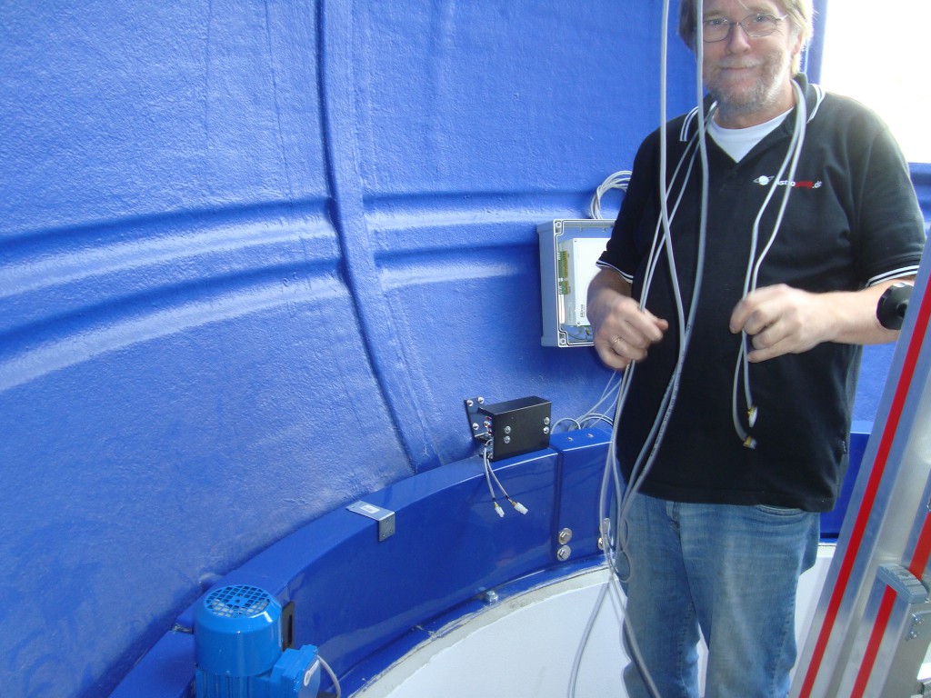 Nach dem Aufbau der Elemente und des Beobachtungsfensters geht es an den Innenausbau. Aus unserer Erfahrung wissen wir, worauf  bei der Montage der Motoren und der Steuerung besonders geachtet werden muss. Schließlich soll die Kuppel beim Drehen oder Öffnen des Fensters nicht die Nachbarn wecken.