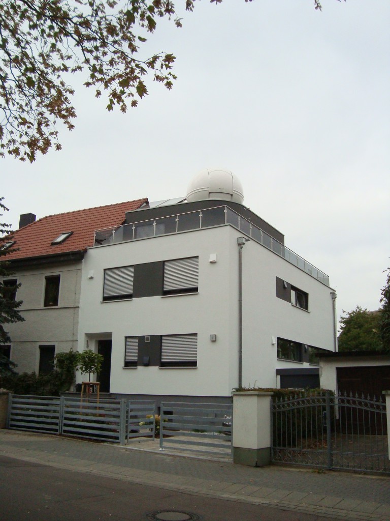Trotz des äußerst ungünstigen Wetters gelang es uns, wie geplant den Aufbau in zwei Tagen zu vollenden. Am Ende hat die ganze Familie die neue Sternwarte in Ihrem Garten bewundern können. Uns wurde versprochen bei der Entdeckung der Supernova auch unseren Beitrag zu dem Erfolg nicht unerwähnt zu lassen.