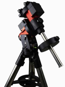 Die Montierung ist kompakt im Design und hat auf ein überaus günstiges Verhältnis von Gewicht zu Tragfähigkeit – die nur 7 Kilogramm schwere Montierung trägt präzise und sicher eine Zuladung bis zu 20 Kilogramm! Mit dem eingebauten elektronischen Polsucher (iPolar) ist die korrekte Ausrichtung der Montierung (Polar Alignment) ein Kinderspiel – sogar dann, wenn der Polarstern nicht sichtbar ist. Dank der großen Klemmhebel für das Getriebe kann dieses auch mit Handschuhen problemlos gelöst oder eingerastet werden. Das interne Kabelmanagement verhindert einen Kabelsalat oder Kabelabriss. Der Universal Self-Centering Saddle nimmt Prismenschienen nach Losmandy- und Vixen-Standard auf. Die Montierung verwendet ein zuverlässiges Schrittmotor-Antriebssystem mit geringem Stromverbrauch und eine Datenbank mit über 212.000 Objekten. Das integrierte GPS, sowie die große Handsteuerbox mit optionalem Wi-Fi bringen zusätzlichen Komfort.