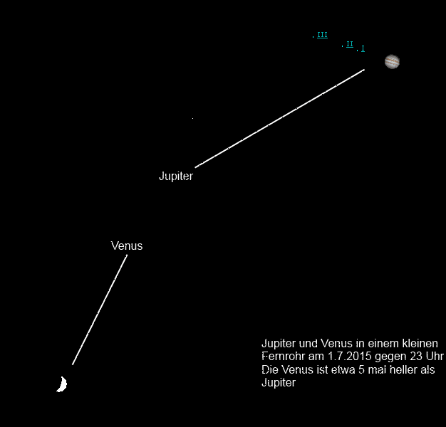 Gesellschaft leistet ihr der rote Planet Mars. Er wandert allmählich in das Sternbild Fische und leuchtet schwächer als Venus mit etwa 1mag. Knapp 2° unterhalb von Venus versteckt sich der schwache Neptun. Wenn Sie ihn erwischen wollen, sollten Sie kurz nach Anbruch der Dunkelheit starten, denn der Gasriese geht am 15. schon um 20:50 Uhr unter.