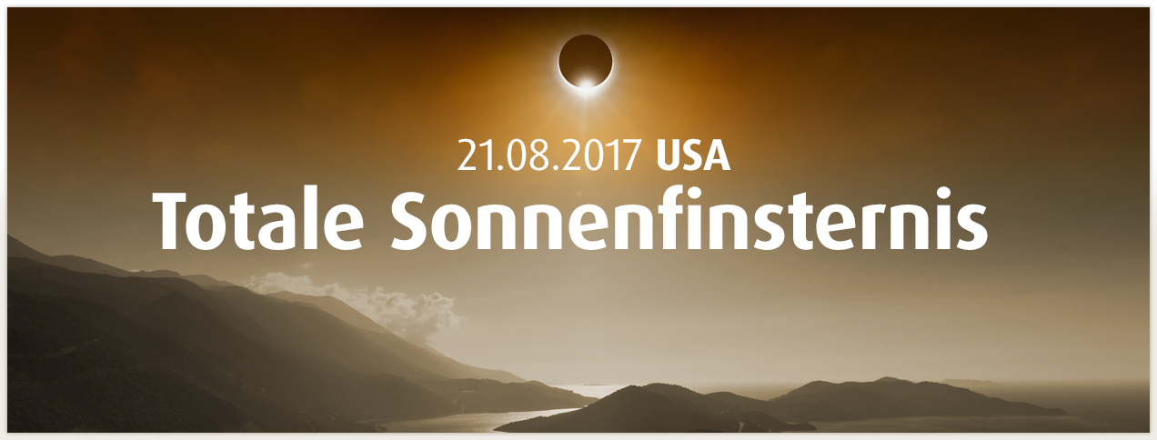 Vielleicht haben Sie ja schon längst geplant, in die USA zu reisen um einen Platz an der Finsternislinie zu ergattern. Angeblich erwartet man, dass sich am 21. August bis zu 7,4 Millionen Menschen die Finsternis ansehen. Absolut wichtig: Die Augen müssen geschützt werden. Blicken Sie niemals ungeschützt direkt in die Sonne. Eine Sonnenfinsternis-Brille ist ein MUSS, um Ihre Augen ausreichend zu schützen. Geprüfte Sicherheit geht vor! Sollten Sie zur Finsternis in die USA reisen, dann empfehlen wir Ihnen die zertifizierte Omegon Sonnenfinsternis Brille. Bitte verwenden Sie diese Brille für Ihre Augen, nicht für ein optisches Instrument. Für ein Teleskop oder Fernglas ist ein Sonnenfilter für das Objektiv Pflicht. Eine große Auswahl von Filtern für Ihr Instrument erhalten Sie hier.