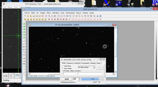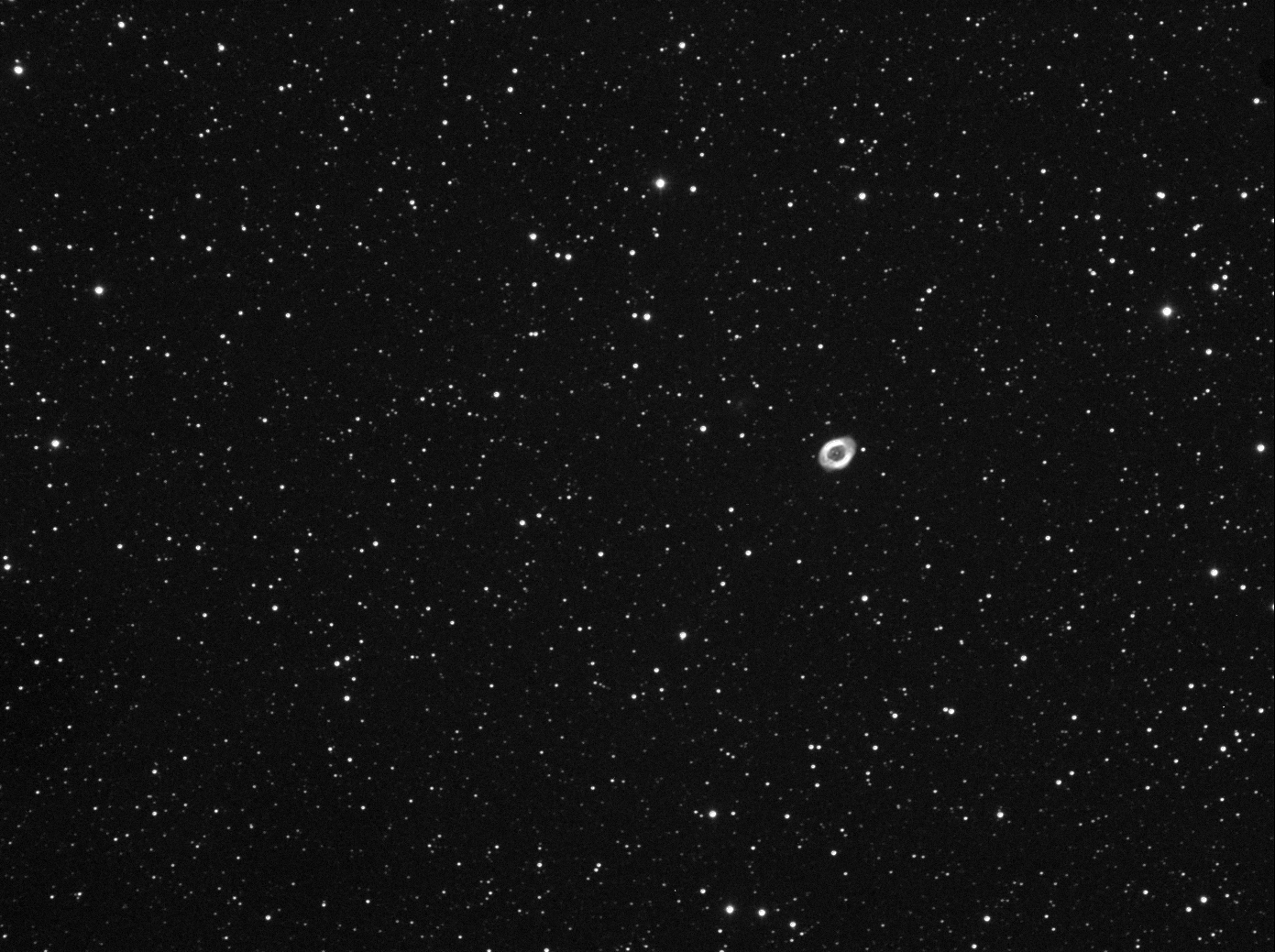 Fotografiert wurde mit dieser Ausrüstung der Planetarische Nebel M57 und für das Guding wurde das beliebte Programm PHD Guiding verwendet. Als Aufnahmesoftware kam Astroart 5.0 zum Einsatz. Das erste Ergebnis kann sich sehen lassen! Der Ringnebel wurde mit der Atik 414ES 300 Sekunden lang belichtet. Die Sterne sind perfekt rund über das gesamte Bildfeld.