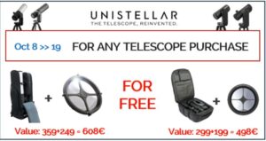 Unistellar bietet während eines „Black Friday“ Aktionszeitraums nun 20% Rabatt auf sämtliche Produkte an: Smart Teleskope, Rucksäcke, Zubehör.