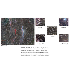 Ich nutze diesen Komakorrektor in einem 200mm f5 Newton von Skywatcher in Verbindung mit einer APS-C DSLR und habe bis in die Ecken nadelscharfe Sterne.
