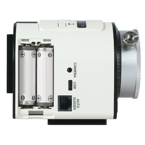Die Polarie U arbeitet mit 4 AA-Batterien. Darüber hinaus ist sie mit einem externen USB-Stromanschluss (USB Typ C) ausgestattet. Eine Gewinde Buchse für die 3/8-Zoll-Schraube befindet sich an der Unterseite und Rückseite des Polarie U. Der Star Tracker kann mit einer 1/4"- oder 3/8"-Schraube befestigt werden.