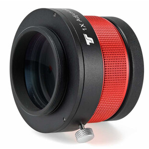Wesentlicher Bestandteil des Korrektors ist eine integrierte Feinverstellung. Durch Drehen des Rändelringes am Korrektor können Sie den Abstand zum Sensor auf Bruchteile eines Millimeters genau einstellen. Sobald sie den gewünschten Abstand erreicht haben, fixieren Sie diesen mit der Klemmschraube. So können Sie mit angeschlossener Kamera über Testaufnahmen den optimalen Abstand ermitteln, ohne zusätzliche Adapter und Abstimmringe. Die Kamera verdreht sich bei der Feineinstellung nicht.