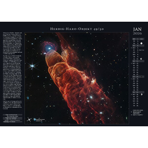 Le texte détaillé, rédigé par des astronomes spécialisés, est unique en son genre. Il explique ce qui se cache exactement derrière chaque objet céleste. Chaque page du calendrier comporte également un tableau de données qui indique, entre autres, dans quelle constellation se trouve l'objet dans le ciel.