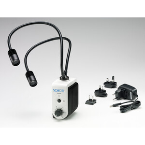 L'EasyLED Spotlight Plus est disponible en deux versions : un projecteur simple à une tête d'illumination et un projecteur double à deux têtes d'illumination. La tête LED du nouveau Spotlight Plus a une puissance lumineuse élevée de 140 lm. Les têtes d'illumination sont équipées d'ailettes de refroidissement spéciales qui évitent que l'objet qu’elles éclairent ne chauffe sous le microscope. De plus, il est possible d’utiliser deux têtes LED simultanément pour créer un contraste clair-obscur net, afin de visualiser encore plus clairement les objets sous le microscope.