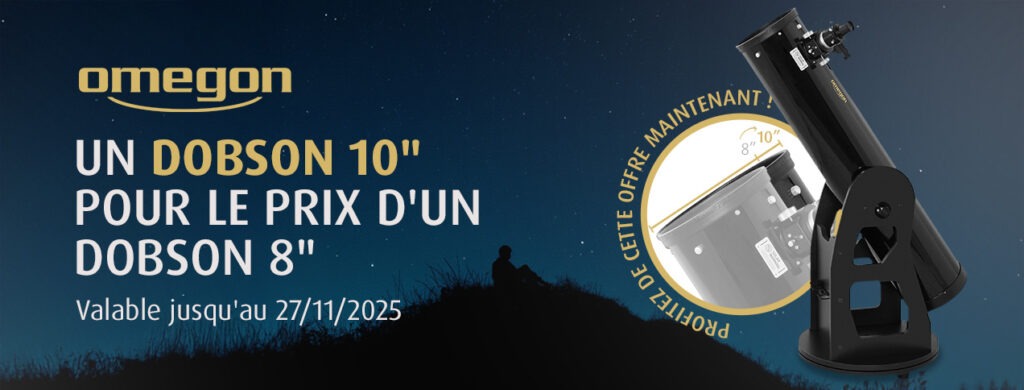 Uniquement du 01/10 au 27/11/2025 : achetez maintenant le Omegon Advanced Dobson N 254/1250 au prix du modèle plus petit de 8 pouces (200 mm.)