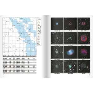 Les objets sont classés par ordre numérique de leur numéro NGC (New General Catalogue) ainsi que par constellation en fin d'ouvrage, avec pictogramme associé à chaque objet. Une colonne vous oriente sur le choix des filtres interférentiels (OIII, UHC, Hß) à utiliser pour les nébuleuses.