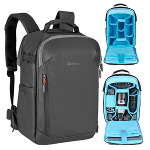 Ce sac à dos photo compact peut accueillir 1 à 2 appareils photo reflex numériques ou hybrides, ou 3 à 4 objectifs de taille moyenne, un flash, un ordinateur portable jusqu'à 15,6 pouces, une tablette jusqu'à 11 pouces et des accessoires. Il peut également contenir un appareil photo reflex numérique avec objectif et un drone compact et pliable avec contrôleur et batterie.