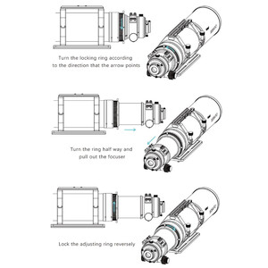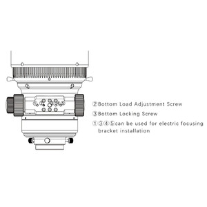 Porte-oculaire manuel : le porte-oculaire à crémaillère de 3,5 pouces avec démultiplication est compatible avec la plupart des moteurs de mise au point actuels. La course de mise au point est de 100 mm. L'ensemble du porte-oculaire est usiné CNC et doté d'un revêtement antireflet à l'intérieur. Une échelle facilite le réglage d'une position précise.