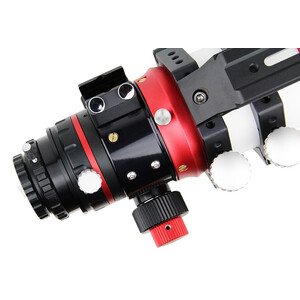 Les colliers de serrage redessinés permettent d'utiliser des queues d'aronde de type Vixen et Losmandy. Sur les collers, une pratique poignée de transport permet également le montage d'autres accessoires, une lunette de guidage par exemple.