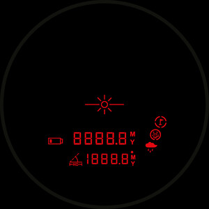 Seine Entfernungsmessungsfunktionen umfassen: Entfernungs-, Regen-, Jagd-, Nah-, Horizontalentfernungs- und Winkelmodus. Die Helligkeit des Displays kann manuell in 6 Stufen eingestellt werden.