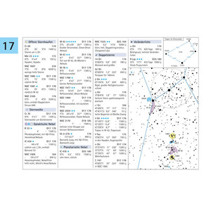Zu jeder Atlaskarte gibt es eine Seite mit sehenswerten Objekten in diesem Himmelsausschnitt, sodass man schnell Objekte zum Beobachten findet. Sinnvoll ist dabei auch die Angabe der scheinbaren Helligkeit der Objekte (Magnitude), sodass man immer weiß, ob man das Objekt auch mit seinem Teleskop sehen kann.