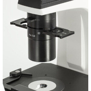 - Ein spezieller Abbe-N.A.-0,3-Kondensor mit Aperturblende und großem Arbeitsabstand von 72 mm gewährleistet ein optimales Arbeiten im Hellfeld, Phasenkontrast und bei Fluoreszenzanwendungen