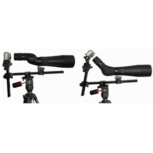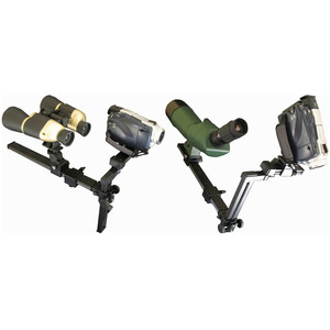Im Gegenteil, der Aufbau ist wirklich einfach. Der Adapter wird durch das integrierte Anschlussgewinde mit dem Stativ verbunden. Spektiv und Digitalkamera werden durch Schrauben, die sich auf dem Adapter befinden mit selbigem verbunden.