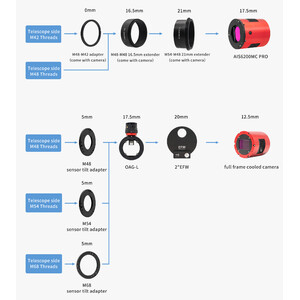 ZWO hat mit dieser neuen Kamera wieder einen Schritt nach vorne gemacht. Der Full Frame Sensor mit ca. 43mm Diagonale erlaubt Astrofotos mit gigantischen Bildfeldern.