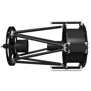 Dieses außergewöhnliche Teleskop ist das Ergebnis von fast drei Jahren Entwicklungsarbeit. Herausgekommen ist ein Ritchey-Chrétien-Teleskop in Gitterrohrbauweise aus High Module Carbon Fiber. Die Verbindungen der Gitterkonstruktion und die Justierungsbolzen sind aus CNC Titan (Grade 5). Keine anderen Teleskope dieser Klasse sind so leicht, temperatur- und formstabil und das auch unter ungünstigen Windbedingungen und mechanischen Belastungen.