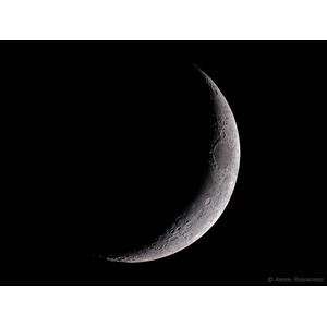 Fotografisch besticht der Omegon 127er ED durch seine relativ kurze Brennweite und das - für Refraktoren - schnelle Öffnungsverhälltnis von f:7,5, wobei die Schärfe und der Kontrast hier jedem Spiegelsystem weit überlegen sind. Dies zeigt auch die Strukturwiedergabe der Galaxien im Bild 'Leo Triplet' und die Schärfe und der Kontrast in dem Mondfoto.