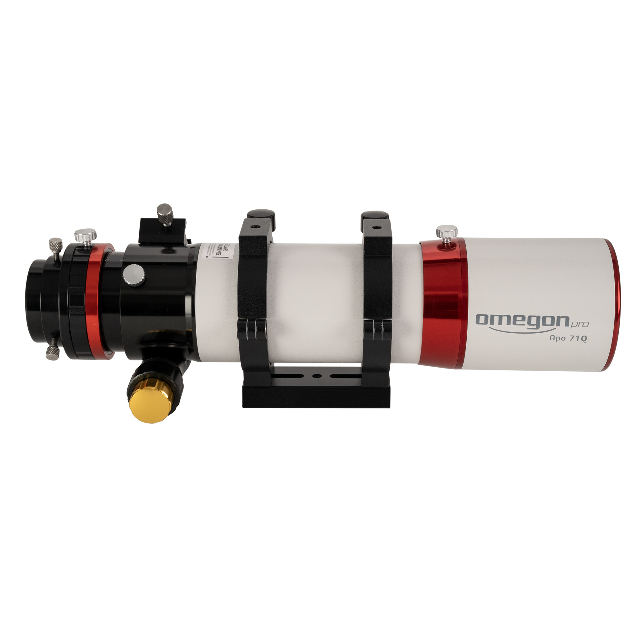- 71mm Quadruplet ED-Apo mit vier Linsen, erreicht eine apochromatische Korrektur für fantastisch klare, flache und farbreine Bilder