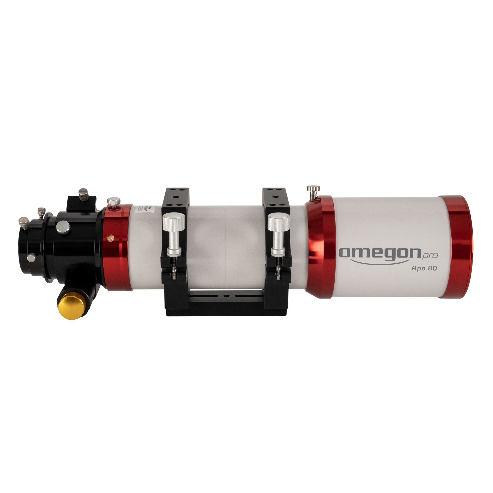Der Tubus des Omegon Apo besteht aus einer CNC gefertigten Metallkonstruktion mit einem raffinierten Blendensystem gegen Reflexe. Der komplette Tubus wurde mit einem samtähnlichem, schwarzen Gewebe ausgekleidet.