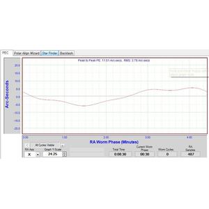 Der Schneckenfehler der Montierung liegt bei +/-5 Bogensekunden.
