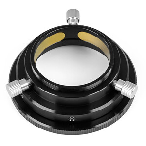 Bei der Astrofotografie ist eine stabile Verbindung zwischen Teleskop und Kamera extrem wichtig. Viele Steckverbinder neigen dazu die Kamera etwas zu verkippen, wodurch dann ein Teil des Bildes unscharf wird. Deswegen versuchen Astrofotografen die Kamera fest mit dem Teleskop zu verschrauben. Dadurch ist es aber nicht mehr möglich z.B. eine Galaxie in Seitenlage schön diagonal im Bild zu platzieren. Hier kommt der Bildfeldrotator ins Spiel. Mit einem Bildfeldrotator können Sie Ihre Kamera oder anderes Zubehör in die gewünschte Orientierung drehen, ohne den Fokus zu verlieren. Die geringe Bauhöhe des Rotators ermöglicht den Einsatz auch bei Systemen mit geringem Backfocus.