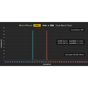H-Alpha-Filter: Dieser Schmalband-Nebelfilter lässt rotes Licht mit einer Wellenlänge von 656 Nanometer passieren. Das ist die Linie, in der HII-Gebiete (Wasserstoffnebel) leuchten.