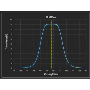 OIII-Filter: Der Schmalband-Nebelfilter lässt Licht mit 501 Nanometer passieren. Das ist die Linie, in der zweifach ionisierte Sauerstoffatome leuchten. Planetarische Nebel und Supernova-Überreste leuchten in dieser Farbe.