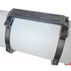 Der Tubus besteht vollständig aus Aluminium mit innenliegenden Blenden und einer langen, einschiebbaren Taukappe. Die robusten Rohrschellen haben eine 330mm lange, breite Losmandy-Schiene als Befestigungsmöglichkeit und oben einen praktischen Tragegriff. Der riesige 4" Okularauszug mit 1:10 Feinuntersetzung ist für Astrofotografie auf höchstem Niveau ausgelegt - auch mit schweren Kameras, die mit Filterrädern oder Off-Axis-Guidern ausgestattet sind. Die freie Öffnung von nicht weniger als 105mm ist dabei notwendig, um das Feld mit seinem 4" Fokussierer auszuleuchten.