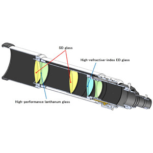 Das optische Design des Objektivs, bestehend aus zwei SD-Linsen und einer ED-Linse, liefert praktisch aberrationsfreie Bilder. Es erzielt scharfe und wunderschöne Sternenbilder, die bis in die Randbereiche gleichmäßig in der Qualität sind, egal, ob Sie die Bilder mit einer digitalen Vollformat-Spiegelreflexkamera oder einer größeren Kamera im Format 44 mm x 33 mm aufnehmen. Genießen Sie die unglaublich hohe Leistung dieser Optik, von der Beobachtung von Planeten bei hoher Vergrößerung bis hin zur Aufnahme von Deep-Sky-Objekten in einem relativ breiten Gesichtsfeld.